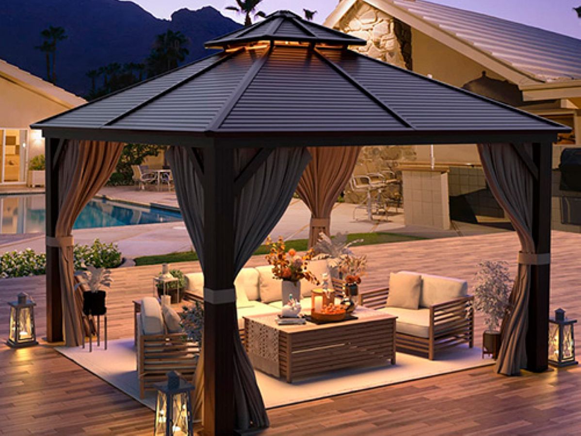 Viele Bausätze enthalten Add-Ons, die zur Verbesserung der Benutzerfreundlichkeit und des Komforts des Pavillons verwendet werden können, wie z. B. Bildschirme, Vorhänge, Lichter und Ventilatoren. Dadurch können Nutzer einen besonderen Outdoor-Wohnbereich gestalten, der ihren Anforderungen und Vorlieben entspricht.
