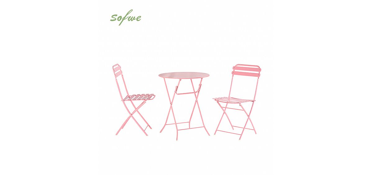 Hervorragende Haltbarkeit:Trotz seiner geringen Größe und seines geringen Gewichts ist dieses Bistro-Set solide und robust. Die Stühle sind angenehm breit und tief, während der Tisch über ein solides Metallgestell verfügt, das bis zu 110 Pfund tragen kann. Darüber hinaus ist die rosafarbene Beschichtung witterungsbeständig, sodass das Set langlebig und langlebig ist.