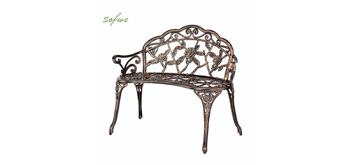 Erstaunliches Rosendesign: Die Gartenbank verfügt über eine erstaunliche Schnitzerei einer Rose, Hochtemperatur-Sprühfarbe, vergoldete Handwerkskunst und glatte Linien. Ihr Geschmack ist überall offensichtlich. Sie können die Terrassenbank in Ihrem Garten, Hinterhof, auf Ihrer Terrasse oder Ihrem Balkon aufstellen, um eine romantische Stimmung zu schaffen.