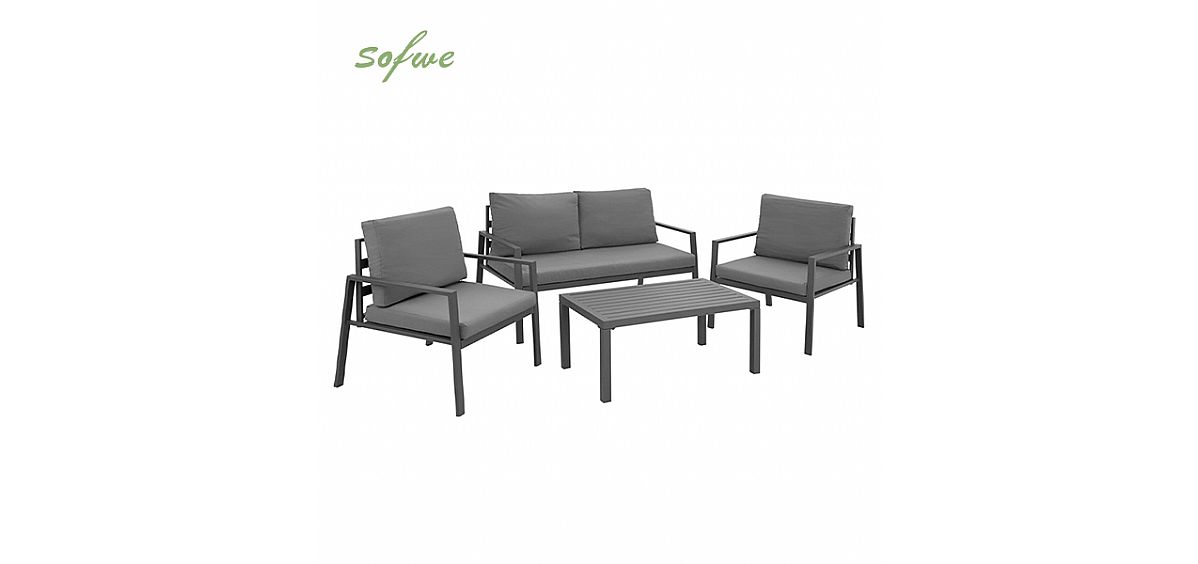 Elegant, komfortabel und hochfunktional:Dieses Möbelset besteht aus Aluminium und verfügt über Eigenschaften wie Korrosionsbeständigkeit, Verschleißfestigkeit und Hitzebeständigkeit, die rauen Wetterbedingungen standhalten. Es ist mit einem abnehmbaren und waschbaren Bezug, einem Tisch mit einer langen flachen Nudeloberfläche und einer Kunststoffkappe am Fuß ausgestattet, um den Boden zu schonen. Dieses Möbelset bietet Platz für 4 Personen und ermöglicht es Ihnen, sich im Freien mit Familie oder Freunden zu unterhalten oder es alleine zu nutzen, um Körper und Geist zu entspannen. Der Tisch bietet ausreichend Platz für Speisen und Getränke und bietet so einen perfekten Platz für Aktivitäten im Freien.