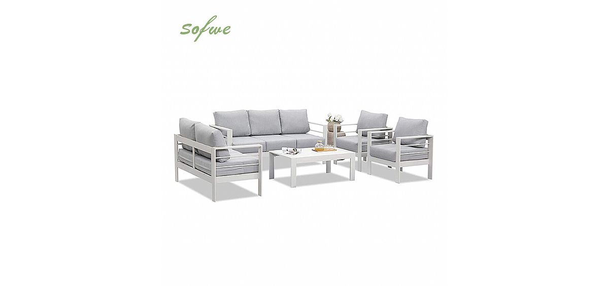 Funktionalität und Mode koexistieren:Bestehend aus einem 100 % Aluminiumrahmen, sorgt hochwertiges Olefingewebe mit Rost- und Wetterbeständigkeit, Verschleißfestigkeit und Lichtbeständigkeit für eine weiche Haptik. Es ist so konzipiert, dass es eine sichere Struktur bietet und Platz für 7 Personen bietet. Jeder Sitz ist mit Kissen ausgestattet, sodass Sie ein Sitzerlebnis im Freien genießen können. Das Metallmaterial aus Gusseisen ist leicht und langlebig, beständig gegen Oxidation, Korrosion sowie Wind und Regen. Darüber hinaus ist es mit einem strapazierfähigen, mehrfarbigen, abnehmbaren Sitzbezug ausgestattet, der leicht ausgetauscht werden kann, um Ihren unterschiedlichen Bedürfnissen gerecht zu werden.