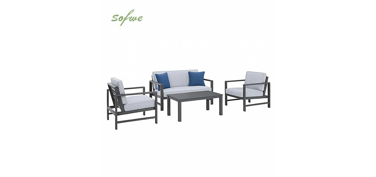 Hohe Qualität:Es besteht aus 100 % Polyester-Innenfutter, Schaumstoffkernpolsterdichte und Polyester-Wickelpolster-Füllmaterial und bietet Ihnen ein komfortables Sitzerlebnis. Der Couchtisch ist exquisit gestaltet, einfach und großzügig. Er besteht aus hochwertigem Aluminiumlegierungsmaterial mit eloxierter Oberflächenbehandlung, starker Korrosionsbeständigkeit, Haltbarkeit sowie Wasser- und Feuchtigkeitsbeständigkeit, sodass Sie mehr Spaß im Freien genießen können.