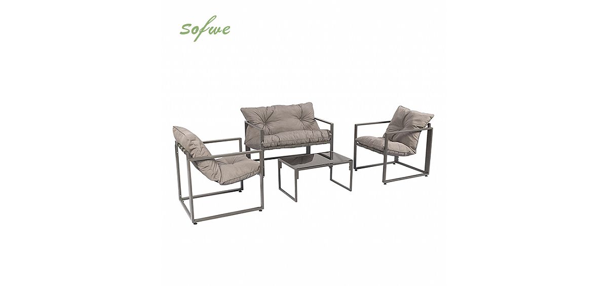 Multifunktional: geeignet für Außenbalkone, Innenhöfe, Gärten und andere Gelegenheiten. Es besteht aus Gusseisen-Aluminium, langlebiger Qualität und starker Witterungsbeständigkeit und kann lange verwendet werden. Aluminium ist ideal, weil es leicht ist und nicht rostet. Die Sitze sind ebenfalls aus flachen Aluminiumnudeln gefertigt. Es ist mit einem 2-Personen-Sofa und 2 Einzelsesseln ausgestattet, die Platz für bis zu 4 Personen bieten und den unterschiedlichen Bedürfnissen der Familienmitglieder gerecht werden. Die Oberfläche des Stuhls besteht aus hochwertigem, bequemem, strapazierfähigem Stoff, der schmutz- und bakterienbeständig ist und verhindert, dass sich die Möbel durch Feuchtigkeit verfärben. Sein Design ist einfach und elegant, geeignet für verschiedene Außenbereiche und macht Ihren Außenbereich schöner und großzügiger.