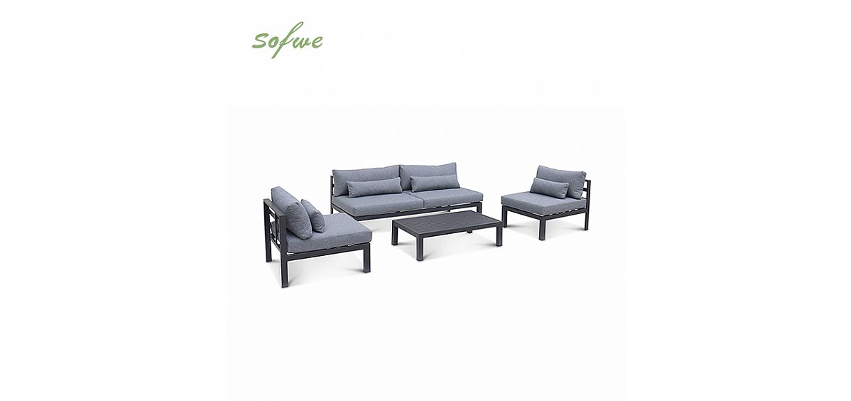 Sorgfältig entworfen: Es besteht aus Aluminium, einem robusten und langlebigen Material. Sein charakteristisches Merkmal ist sein modernes Erscheinungsbild, das mit jedem Dekorationsstil für den Innenhof kombiniert werden kann und Ihren Innenhof modischer und schöner macht. Es ist mit dicken und bequemen Kissen ausgestattet, sodass Sie eine angenehme Ruhezeit im Innenhof genießen können. Sein minimalistisches Design kann Platz sparen und Ihren Innenhof geräumiger und heller machen. Darüber hinaus kann es einer Wasserverschmutzung vorbeugen und Ihre Möbel lange Zeit sauber halten.