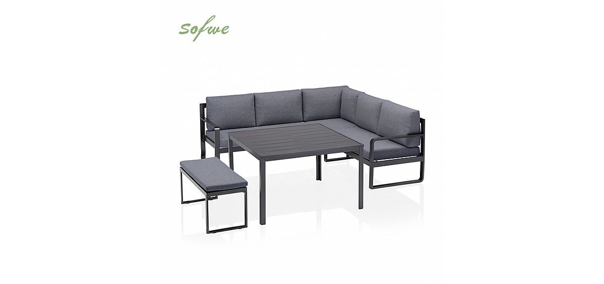 Perfekte Lösung:Bieten Sie eine komfortable und modische Möbeldekoration für Ihren Außenbereich. Es besteht aus Aluminiumguss und verfügt über Funktionen wie Wetterbeständigkeit, Pflegeleichtigkeit und UV-Beständigkeit, die rauen Wetterbedingungen standhalten. Sein Kombinationsdesign kann Ihren unterschiedlichen Anforderungen gerecht werden. Mit der Kombination aus Sofa, Tisch und Hocker können Sie Ihre Zeit im Freien in vollen Zügen genießen. Sein schlichtes und modisches Erscheinungsbild kann Ihrem Außenbereich mehr Modernität verleihen und Ihr Leben im Freien komfortabler, entspannter und angenehmer machen.