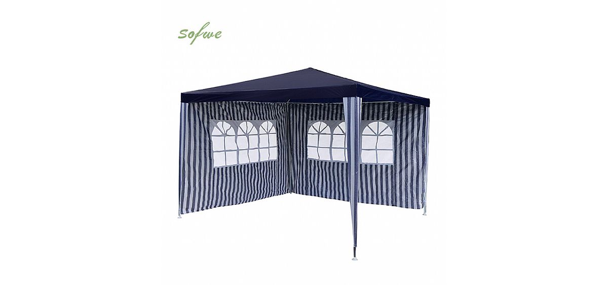 Sorgfältig entworfen: Dies ist ein sorgfältig entworfenes Zelt, das Ihren Außenhof so komfortabel wie Ihr Wohnzimmer im Innenbereich machen kann. Es verwendet hochwertiges Gewebe mit wasserdichten, Sonnenschutz-, winddichten und anderen Eigenschaften, die Ihren Wohnraum im Freien effektiv verbessern können. Darüber hinaus verfügt es über eine abnehmbare Struktur, die einfach zu montieren und zu demontieren ist und Ihren unterschiedlichen Anforderungen gerecht werden kann. Es wird ein großartiger Ort sein, um Freunde und Familie zu unterhalten und Ihren Innenhof komfortabler zu gestalten. Das Ausstellungszelt hat ein einfaches Aussehen, bietet ein perfektes Erlebnis und ermöglicht es Ihnen, einen komfortablen Außenbereich zu genießen.