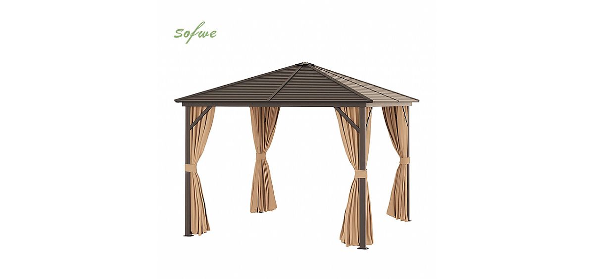 Dieser Pavillon verfügt über einen exquisiten Sonnenschirm aus hochwertigem Aluminiummaterial, das gegen hohe Temperaturen, Korrosion und Witterung beständig ist. Es hat eine solide Struktur und ein modisches und schönes Aussehen. Es kann die Sonne effektiv blockieren, Ihre Familie und Freunde vor der Hitze schützen und Ihnen ermöglichen, einen sicheren und komfortablen Außenbereich zu genießen.