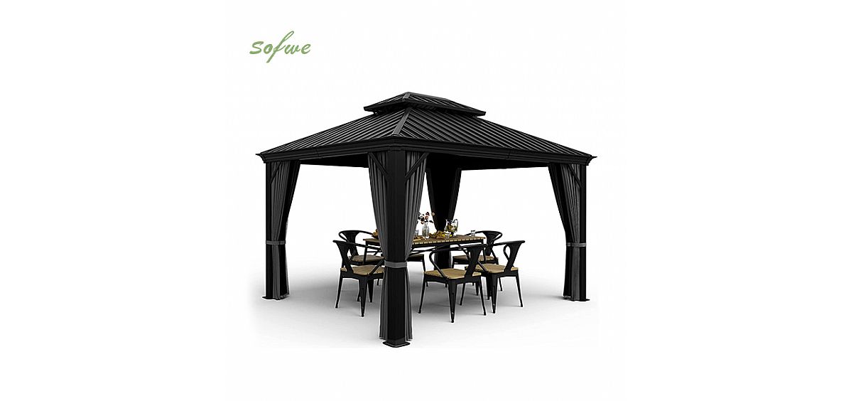 Hohe Qualität: Es verwendet UV-beständiges Material, das UV-Strahlen effektiv blockieren und Sie vor UV-Schäden schützen kann; Es hat auch die Brandschutzzertifizierung CPAI-84 bestanden, mit der Brände wirksam verhindert werden können. Darüber hinaus verfügt es über ein belüftetes Design, das für Luftzirkulation sorgt und es Ihnen ermöglicht, Outdoor-Aktivitäten bequem in der Laube zu genießen. Der moderne Luxus-Outdoor-Pavillon Zelt Hardtop Permanent-Überdachungspavillon mit Mesh ist die ideale Wahl für Outdoor-Aktivitäten und bietet ein sicheres, komfortables und entspanntes Erlebnis.