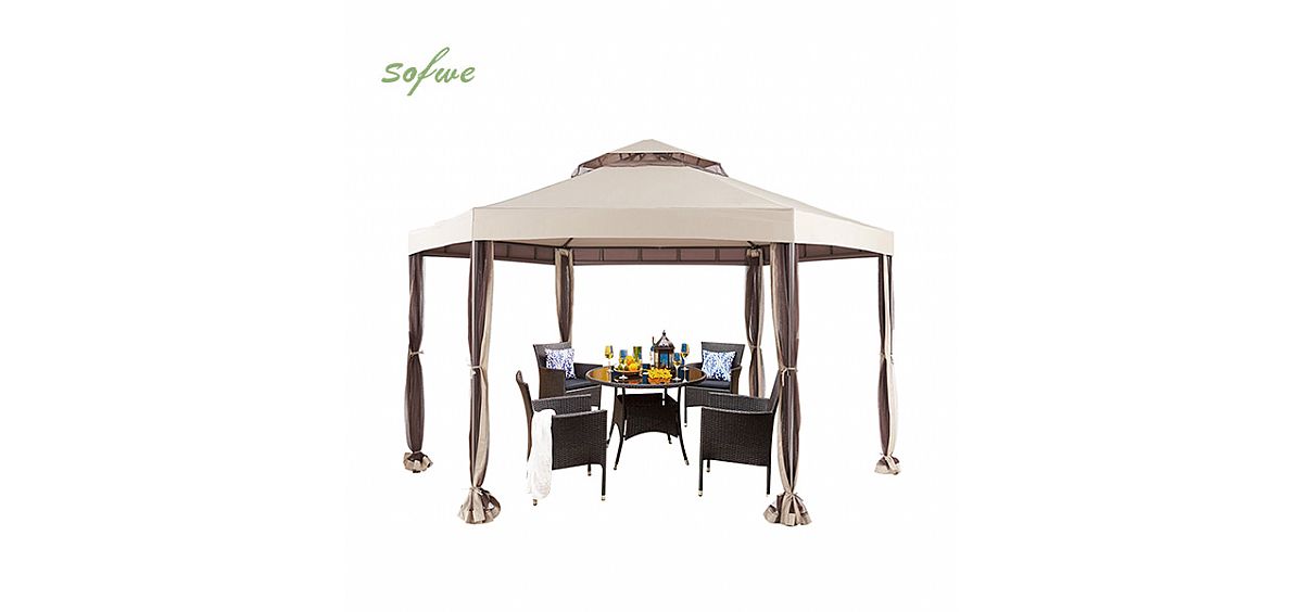 Modisch und langlebig: Es bietet einen bequemen Ruheplatz im Freien. Es besteht aus hochwertigem Aluminiumlegierungsmaterial mit stabiler Struktur und guter Witterungsbeständigkeit. Es kann UV-Strahlen effektiv blockieren und Verletzungen beim Entspannen und Ausruhen im Freien verhindern. Sein Hardtop-Dachdesign kann Regenwasser effektiv blockieren, sodass Sie auch an regnerischen Tagen Ihre Freizeit im Freien genießen können.