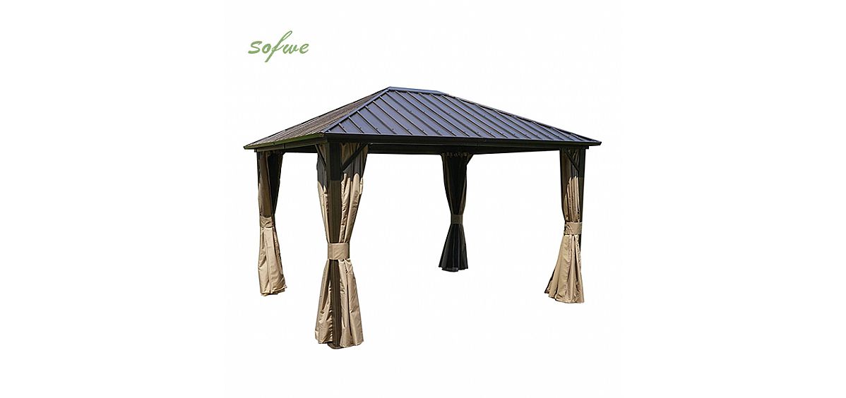 Hochleistungs-Tünche: Dieser überdachte wasserdichte römische Pavillon verfügt über eine Hochleistungs-Tünche, die rauem Wetter widersteht und gleichzeitig die Umgebung verschönert. Es besteht aus hochwertigem Aluminiumlegierungsmaterial und zeichnet sich durch geringes Gewicht, Korrosionsbeständigkeit, starke Witterungsbeständigkeit und hohe Zuverlässigkeit aus. Das Dach besteht aus hochwertigen wasserdichten Materialien mit hervorragender Wasserdichtigkeit, die das Eindringen von Feuchtigkeit von außen wirksam verhindern können. Seine hervorragende Tüncheleistung kann Ihren Garten schöner und großzügiger aussehen lassen. Es hat auch eine gute Wärmedämmleistung, sodass Sie Ihre Freizeit in einer kühlen Umgebung genießen können.